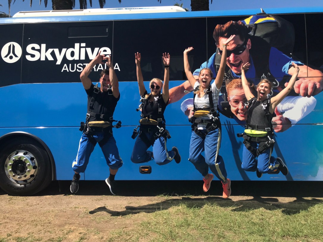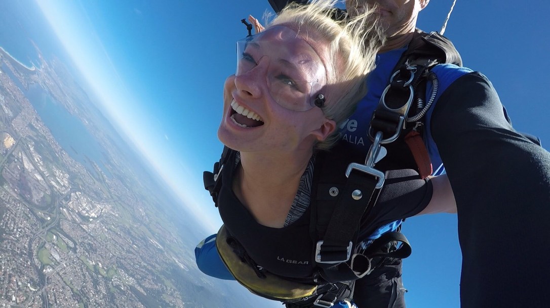 Instead of taking a minute to gather my breath, sort my legs and neck out, we sort of FELL towards the ground. Vertically. It was only mid air that my position was adjusted into the free falling shape…and you can imagine what my face looked like…I’ve never known a better feeling than when he pulled that parachute and we lurched upwards, revealing the beaches of the east coast of Australia as far as your eyes could see. It was spectacular. Those few minutes of swinging around doing twists and turns over the bright blue ocean are some of the quickest (but also longest) moments of your whole life as you try and force yourself to commit it all to memory so you never forget what it feels like to feel so…free. You’re also in complete awe that you just did what you did, and didn’t DIE so your head is absolute mush. I’m surprised I remember any of it to be honest – it all happened so bloody fast. But I do remember it, and I loved every second. Even though I was terrified, I didn’t let it impact my experience, and IM SO PROUD of myself because that’s exactly what this year is all about. Megs 3, Irrational Fear -10000.